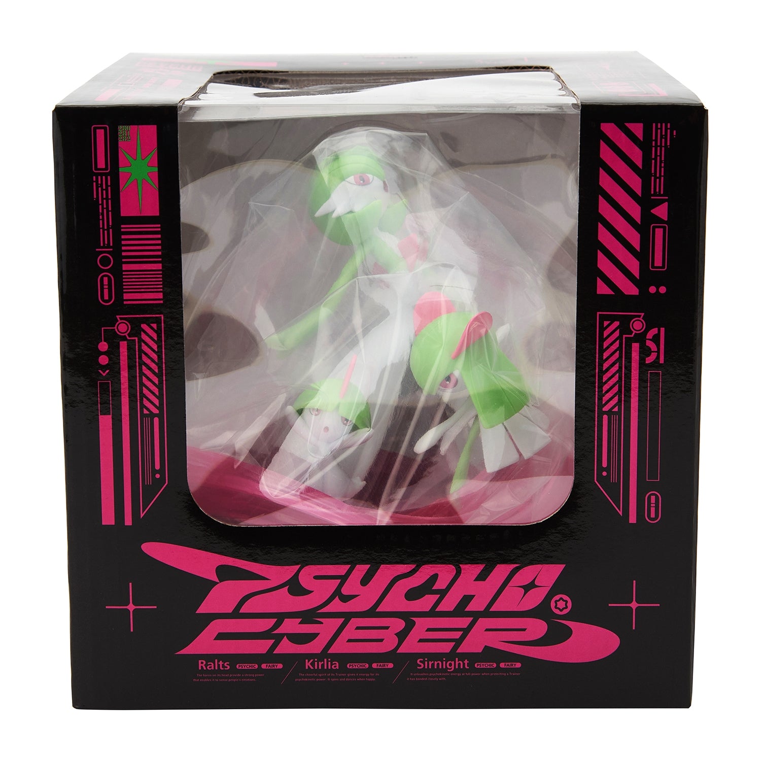 This PSYCHO CYBER light-up figure showcases Ralts, Kirlia, and Gardevoir in a mesmerizing display! Featuring dynamic effects inspired by their signature moves, this collectible makes a stunning centerpiece for any Pokémon fan. Requires three AAA alkaline batteries (sold separately).